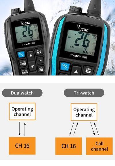 Using Dualwatch and Tri-Watch you can significantly improve your safety and communication effectiveness while on the water. For information about our range of Icom marine VHF products which feature both Dualwatch and Tri-Watch please visit the