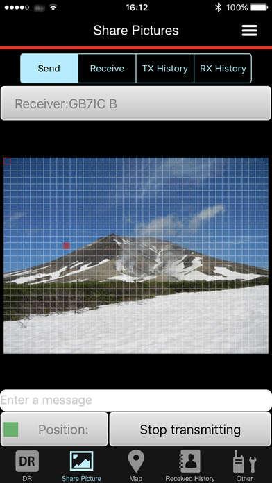You can take pictures with your iOS device or use stored pictures and share them. Pictures of your shack, operating place in the field, rigs, or friends can be sent to other D-STAR transceivers that are also using the app. Add images and make QSOs even more enjoyable. Pictures can be sent in the DV Fast Data mode or conventional DV mode (with voice).